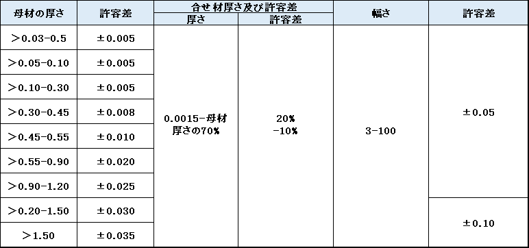 ↑ SUS/AL 0.2(0.1/0.1)*80 ※アルミニウム・ステンレス鋼クラッド材料は、ステンレス高強度の耐食性、アルミニウム優てた熱伝導率の深絞性能及び低コストのクラッド材料。 用途:車載部品、医療機械、圧力容器、リードフレーム、高級調理器具など広く使用されている。